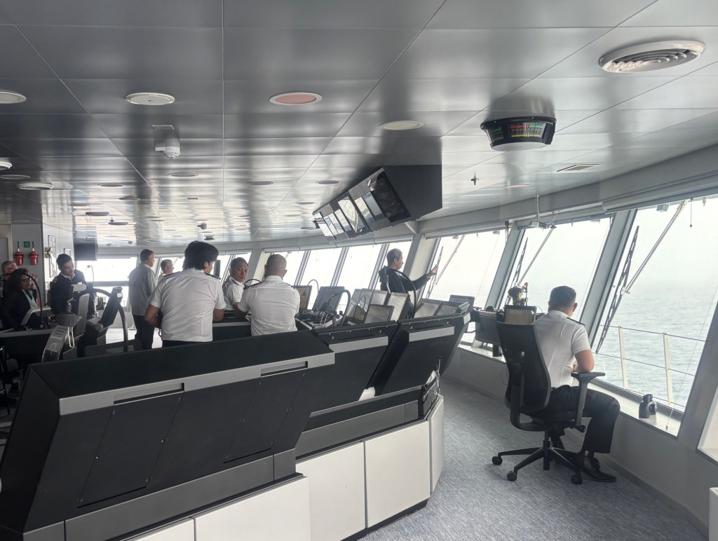 We were also invited to view the bridge area. When it was our turn, all of the officers who were able to talk to passengers were already engaged.