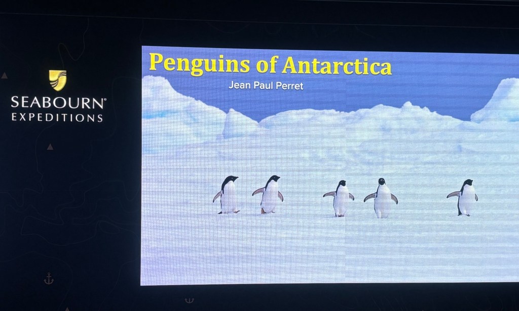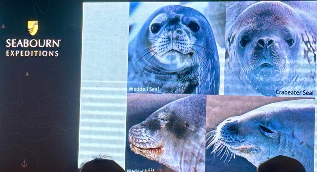 The second round of expedition lecturing was by a scientist with a PHD in Reproductive Biology. We learned about Marine Mammals in Antarctica.