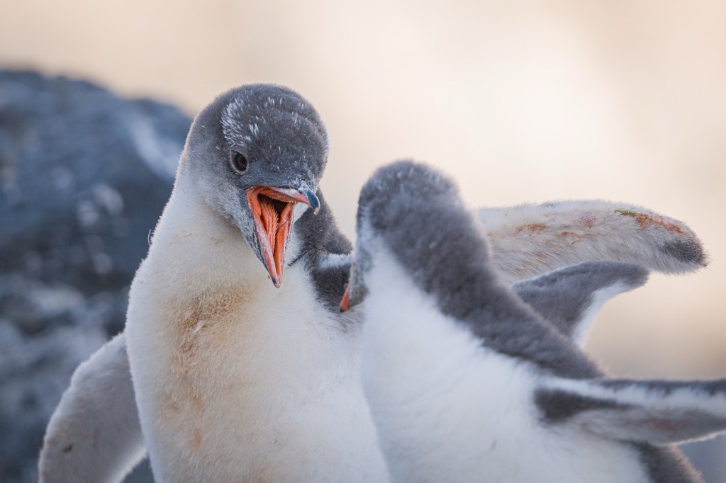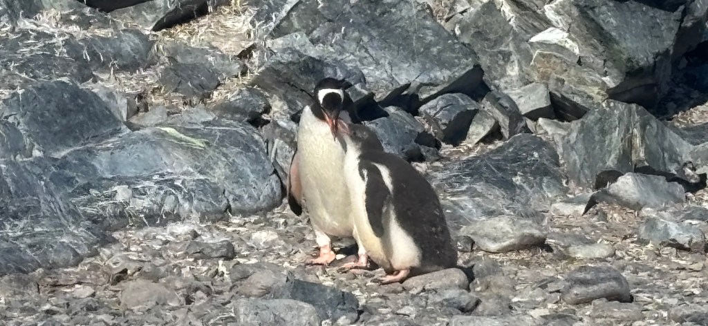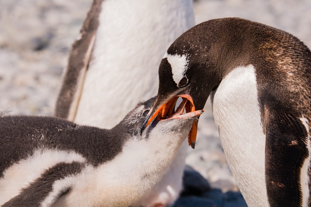 As the Gentoo territory was north of the Adèlie colonies, we saw parents still feeding their chicks.