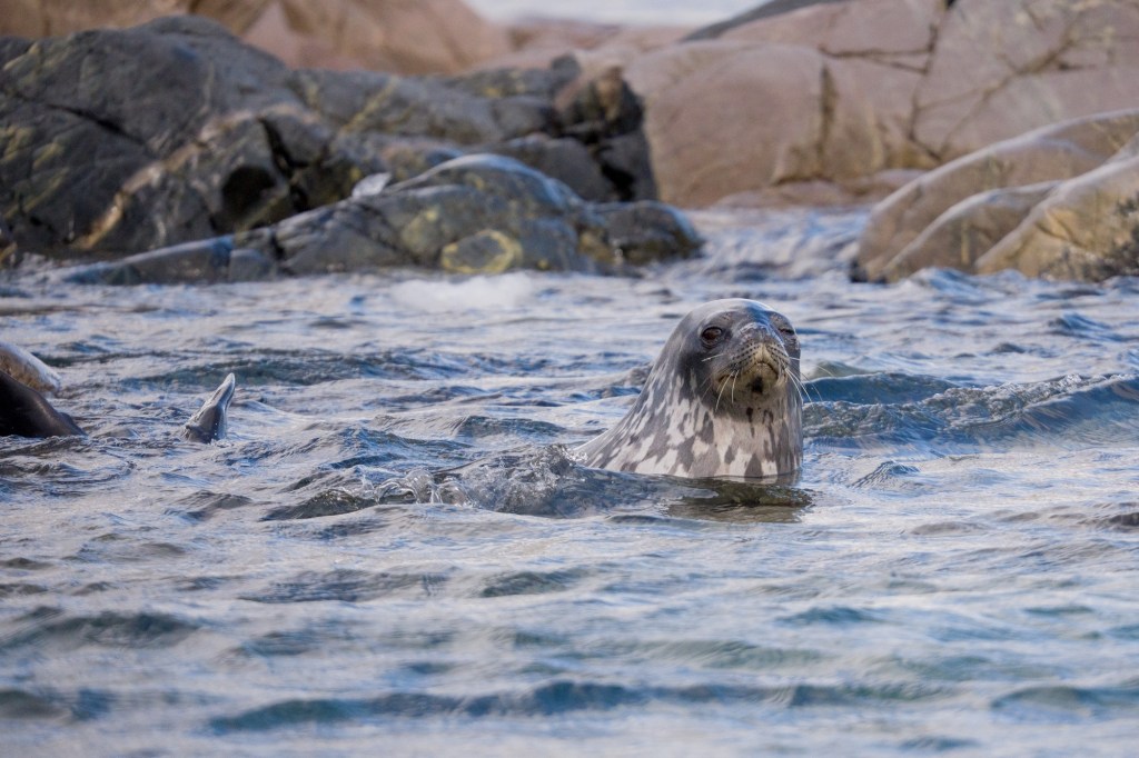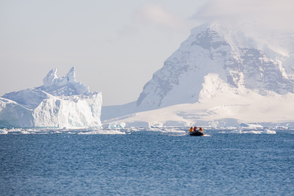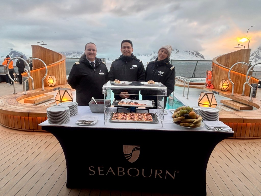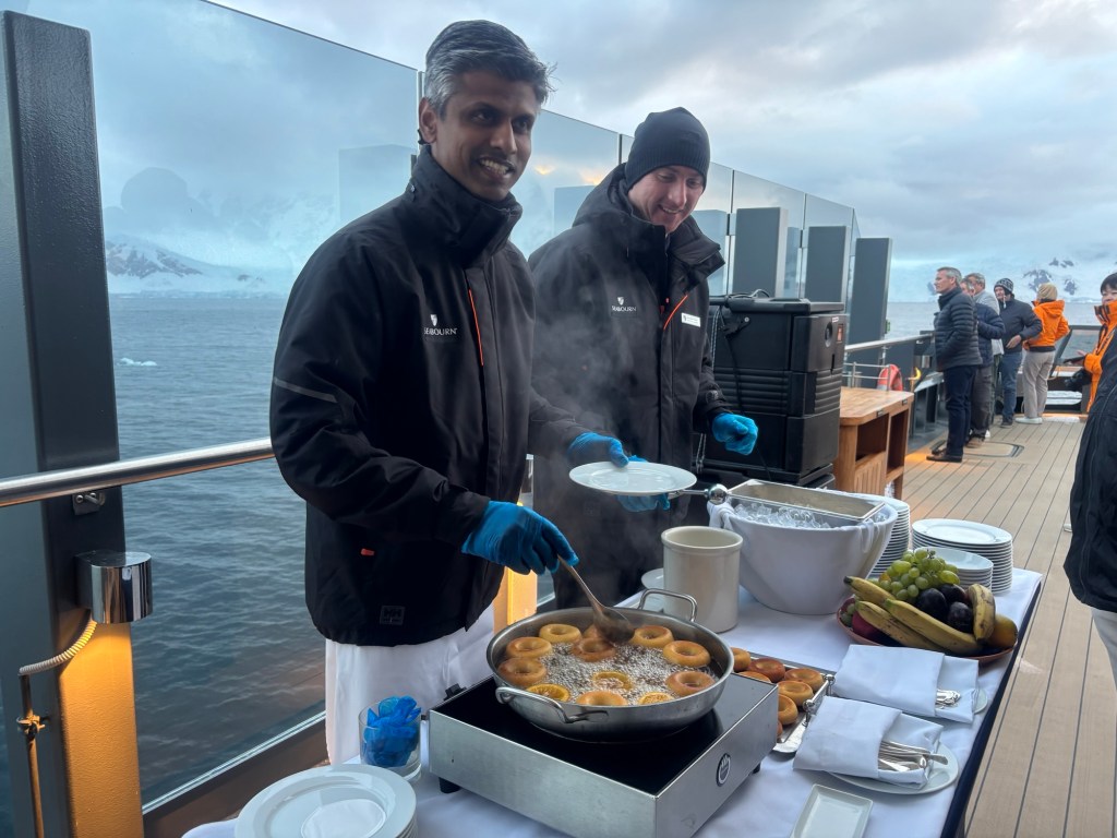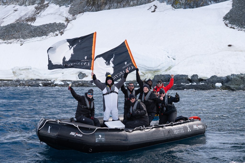 The ship’s hotel team were in a zodiac with the Antarctica flag and champagne. It was a very nice gesture but the conditions weren’t great for lingering over champagne!