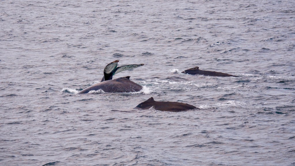 There had to be 50 whales! We saw them come up and go down so many times – often with three, four or five whales in view.